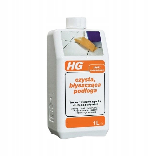 HG CZYSTA, BŁYSZCZĄCA PODŁOGA nadaje wszystkim płytkom podłogowym piękny wygląd, świeży zapach, pogłębiony kolor, ochronną warstwę, „satynowy” połysk- odnawialne przy każdym myciu.
