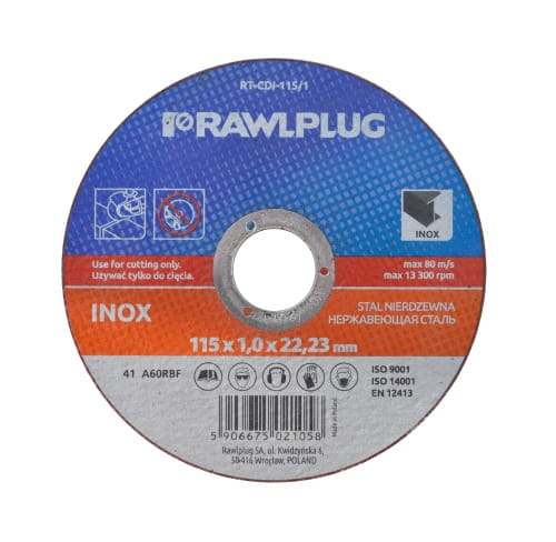 Ściernica korundowa do cięcia stali nierdzewnej 115x10x2223 mm RAWLPLUG