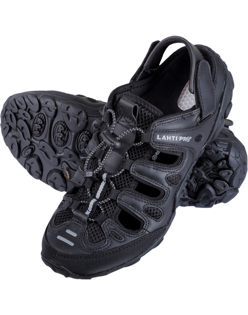 MATERIAŁ: Wierzch: PU/dzianina siatkowa. elastyczne sznurowadła regulowane zaciskiem. Podszewka: dzianina siatkowa. Wyściółka: wymienna (wkładki z elastyczną poduszką tłumiącą wstrząsy oraz podkładką łagodzącą nacisk stopy na podłoże). Podeszwa: gumowa o wysokiej elastyczności. głęboki protektor zapewnia wysoką stabilność obuwia.